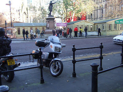 A pristine R100GS on display but not for sale at my local BMW Motorrad dealer photographed moments after I had spent £140 on 20 rubber O rings to overhaul my GS brake calipers - hence the slight camera shake. |